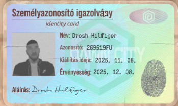 Drosh Újonc 2024. 08. 01. 26 16 LS karakter Drosh Hilfiger 2025. 11. 30. #1 Garázs Igénylés ADATOK Születési neve: Drosh Hilfiger Személyi igazolvány (Kép): Telefonszáma: +38-76-703-5761 Garázs külsejéről készített kép: Kép Helyrajzi szám (F11-es kép): Kép 2 Garázs belsejének típusa: Alap bővíthető