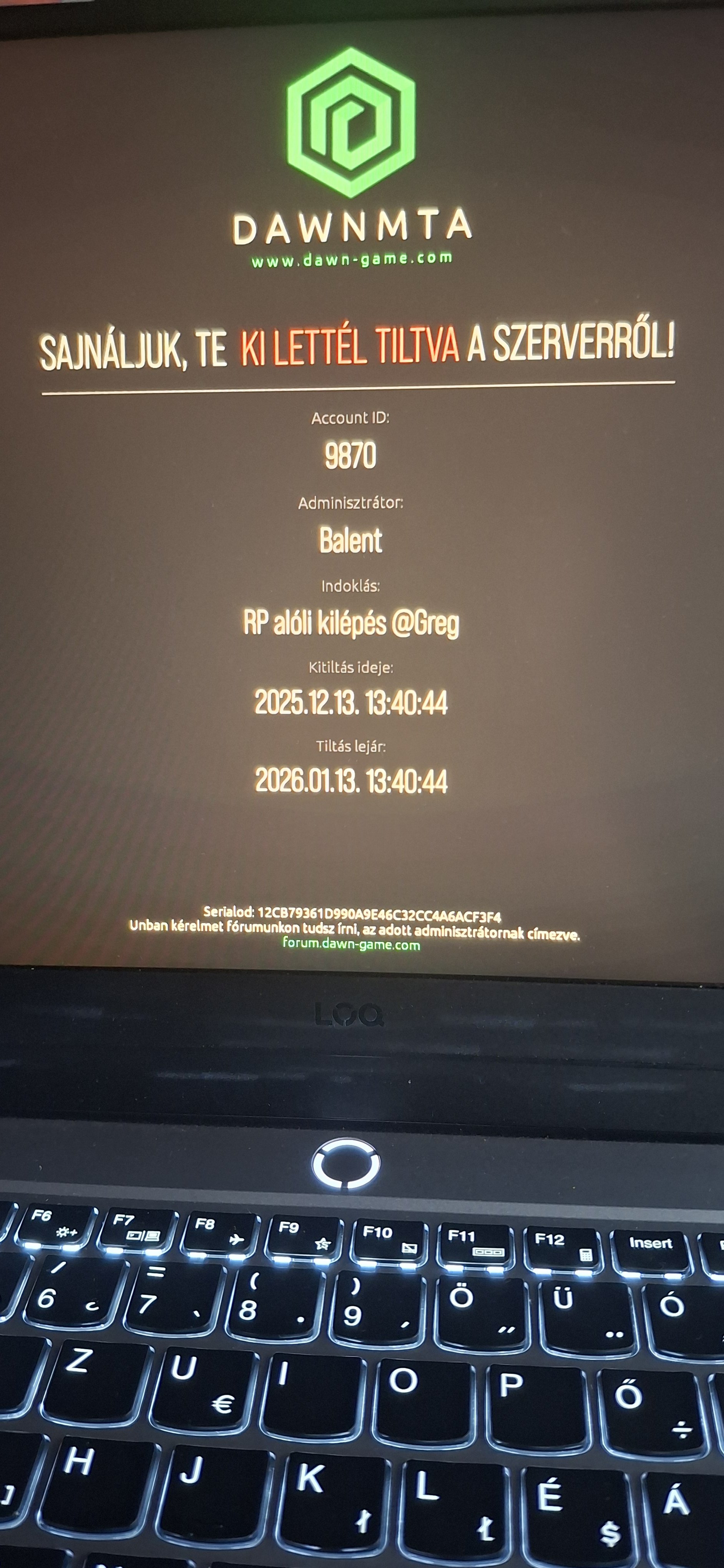 Moderátor/Adminisztrátor neve, aki bannolt: